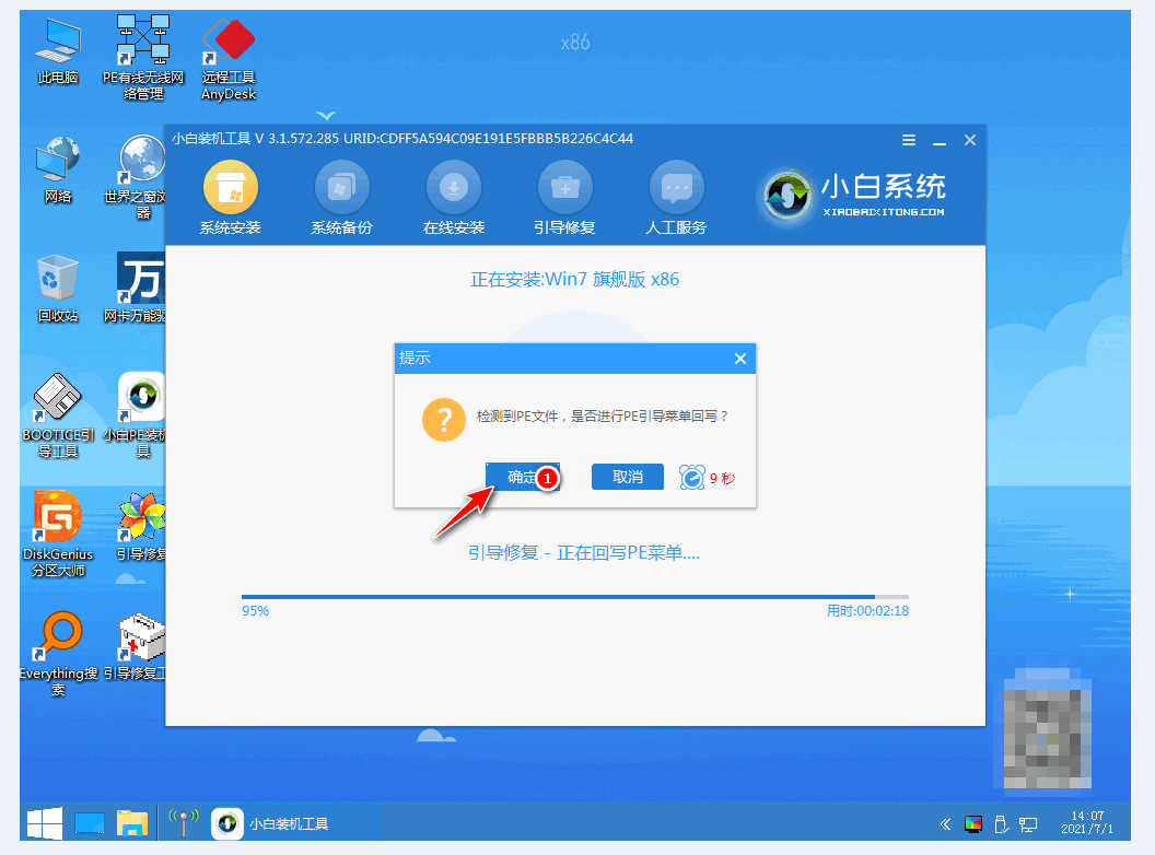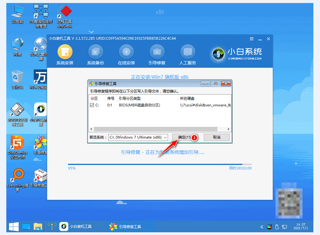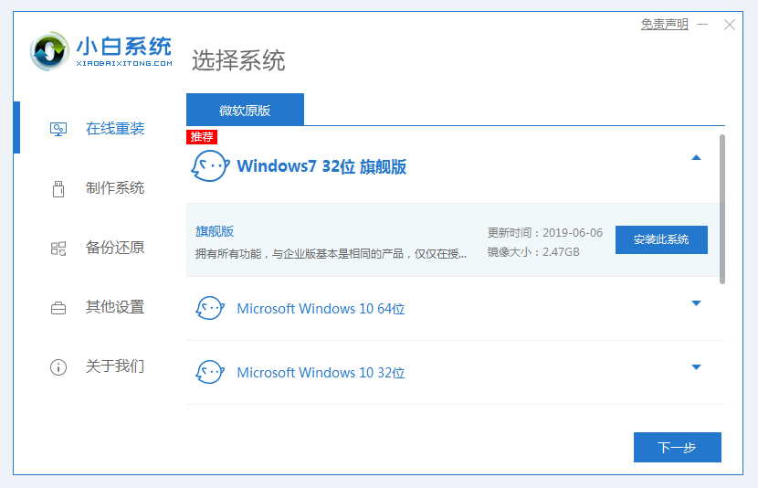 1、在官网中下载小白一键重装系统软件,选择win7系统,点击下一步。