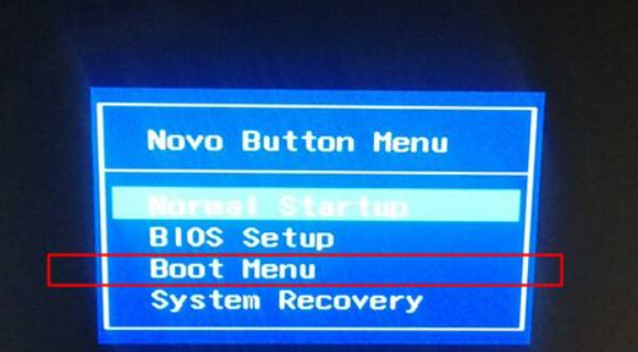 3、启动后调出Novo Button Menu菜单,按上下键选择Boot Menu,按回车;