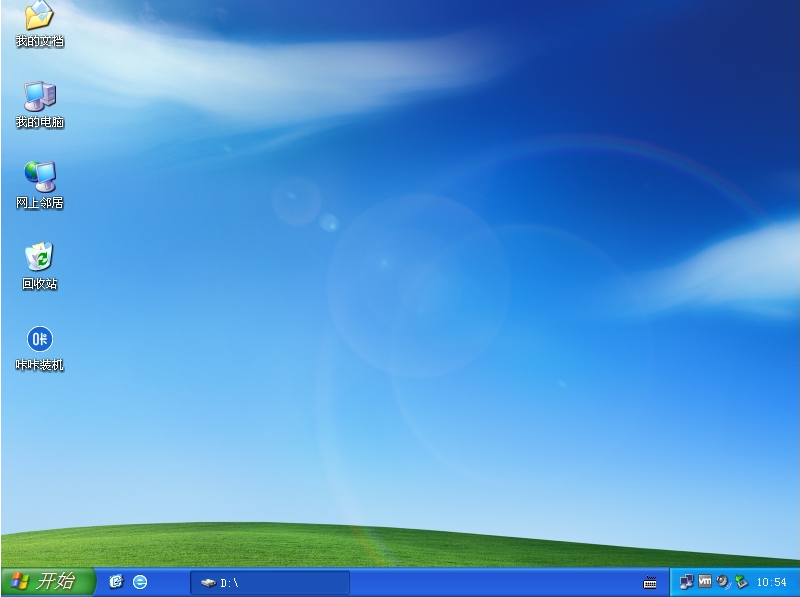 6、期间可能会重启多次,直到进入新的xp系统桌面即表示重装系统xp成功。