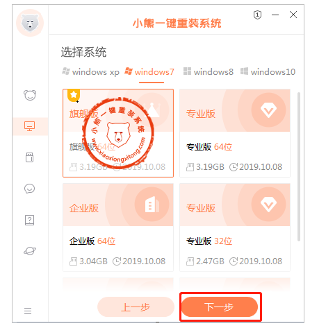 1.在官网下载小熊一键重装系统软件,双击打开软件,选择需要重装的windows7系统文件进行下载。