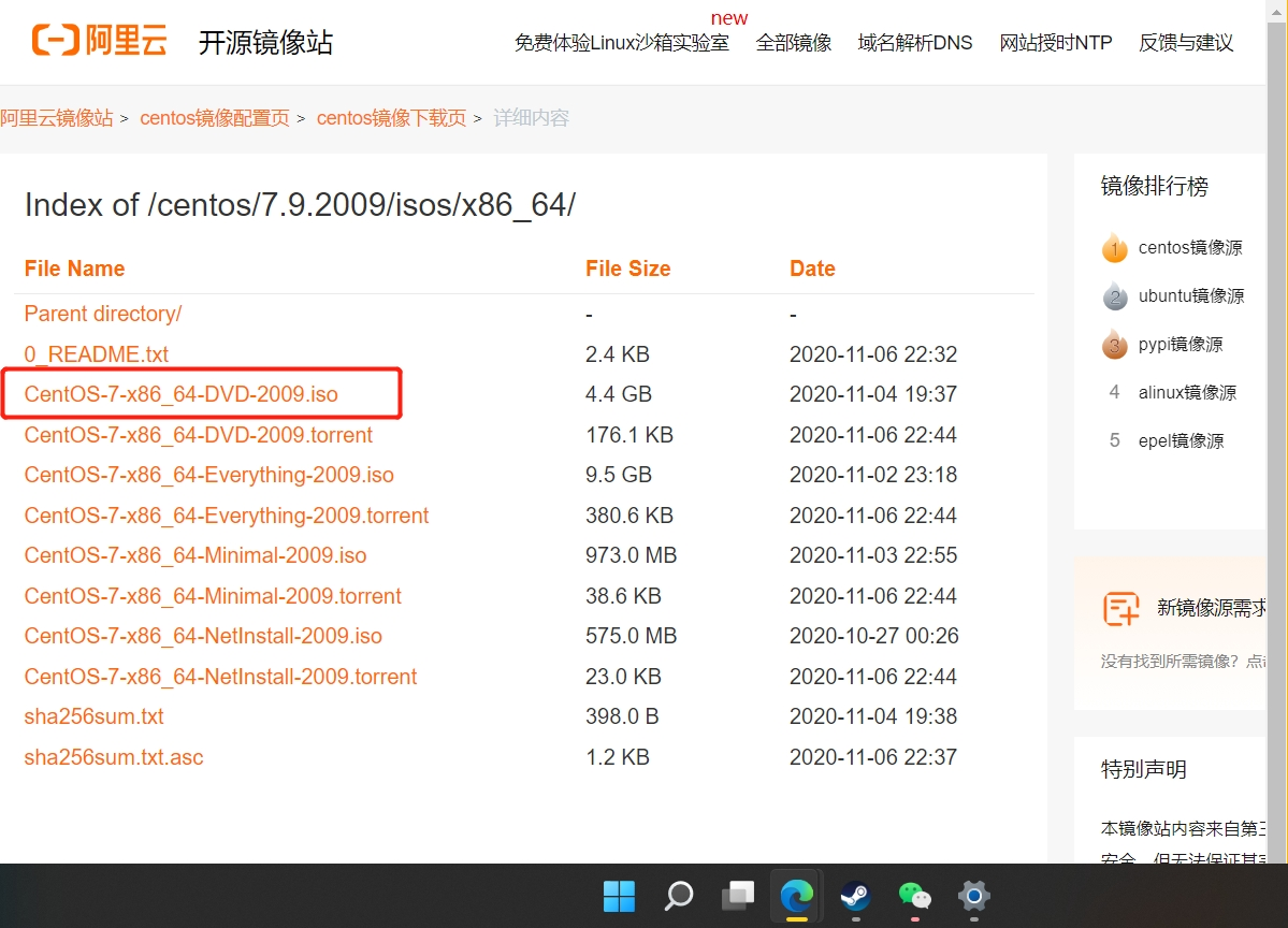 方法二:在阿里云中下载centos7的镜像 选择ios结尾的来下载即可。