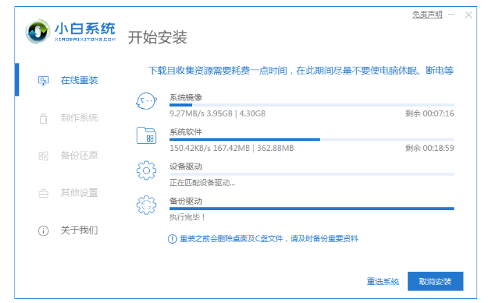 1、下载并运行打开小白一键重装系统,选择win7系统。