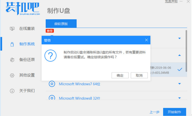 3、当出现提示框,确认U盘内资料全部备份好,点击开始制作即可。