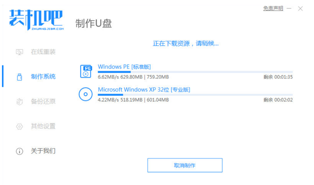 3、耐心等待软件将pe系统等资料写入U盘U盘制作成功之后,点击取消。