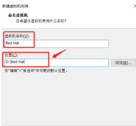 5.给虚拟机命名,建议安装在除系统盘C盘以外的磁盘。