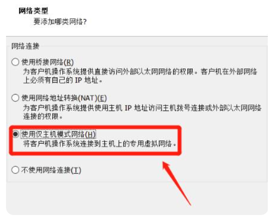 8.然后选择“使用仅主机模式网络”。