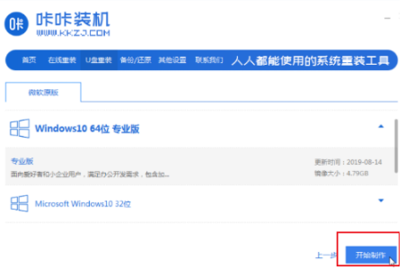 2. 选择我们需要安装的系统之后点击开始制作。
