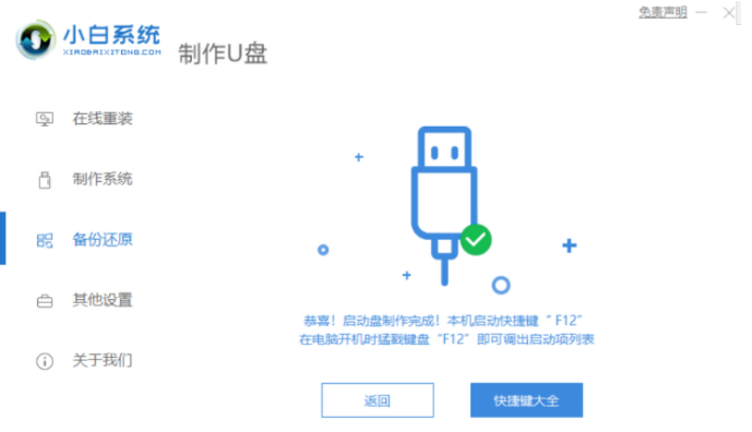 3、等待制作完成之后,可以先打开查看需要安装的电脑的启动快捷键,再拔掉u盘。