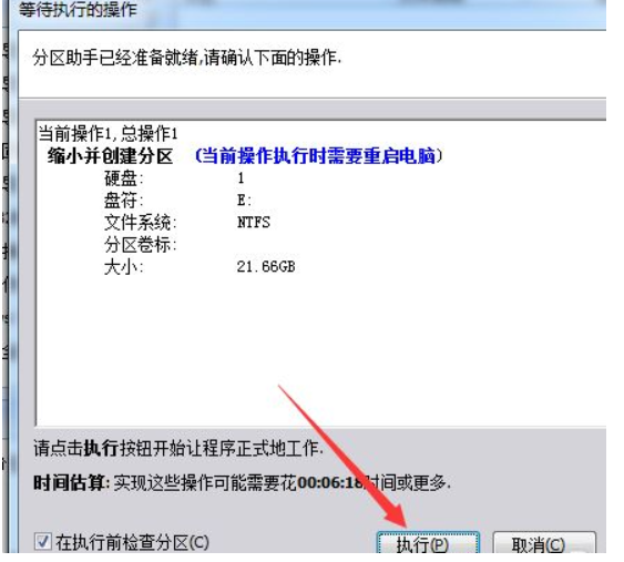 7、最后点击“执行”等待重启分区即可