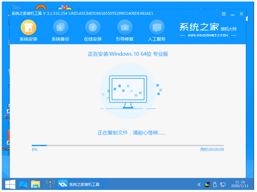 6、接下来会进入到pe系统,打开系统之家装机工具页面继续安装。