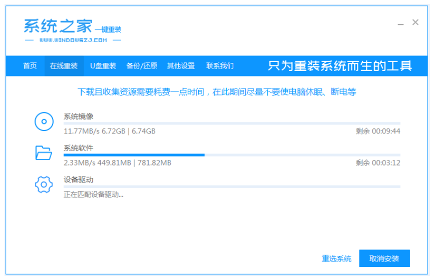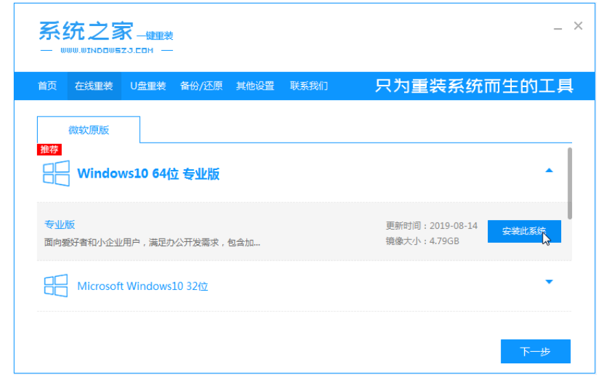 1、首先将系统之家重装软件下载好后并打开。选择在线重装系统。
