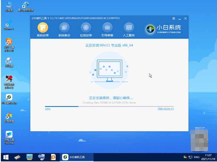 5.进入pe后,桌面上的装机工具会帮助我们自动安装系统,我们等待系统安装完成。