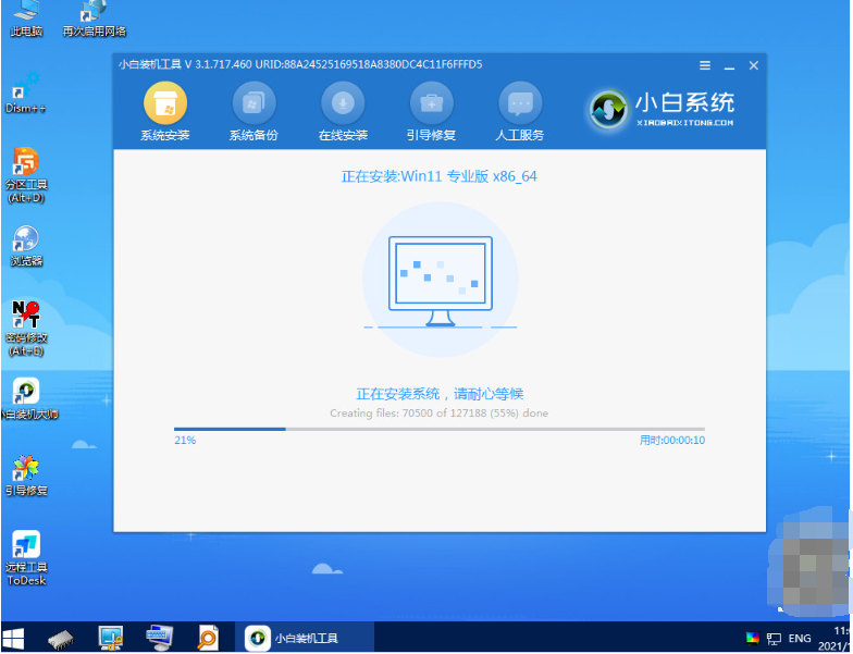 5、接着在pe系统内打开小白装机工具,选择win11系统开始安装到系统c盘。