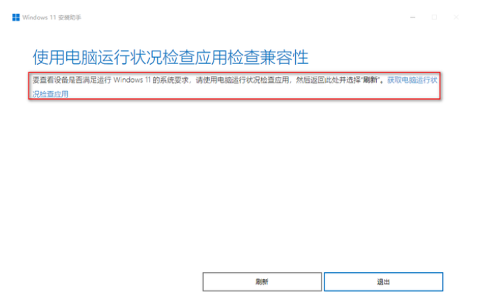 4、提示需要先运行“电脑健康状况检查”,点击此界面蓝色的文字,下载此软件,然后点击运行。
