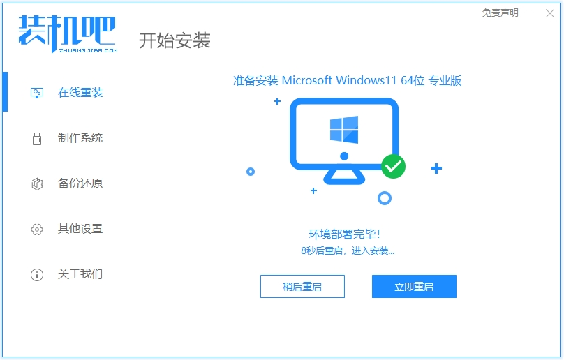 以上便是借助装机吧一键重装系统工具在线给电脑系统重装win11专业版的方法步骤,如果有网友不能直接升级win11的话,都可以参照上面的步骤去安装体验哦。