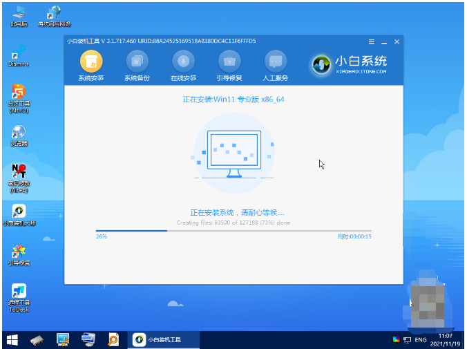 8、在pe环境中,软件自动执行windows11安装中,只需耐心等待完成即可。