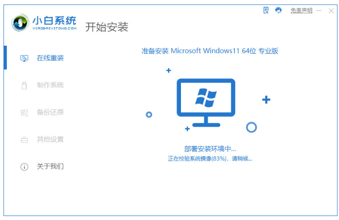 5、win11下载完成后,小白系统软件进入环境部署校验系统镜像状态中。